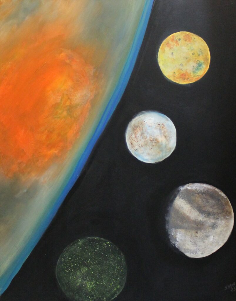 147 Blick nach oben 2020, Acryl auf Leinwand, 70 x 50cm 148 Space 2020, Acryl auf Leinwand, 70 x 50cm149 Strudel groß, 2020, Acryl auf Leinwand, 150×100 cm